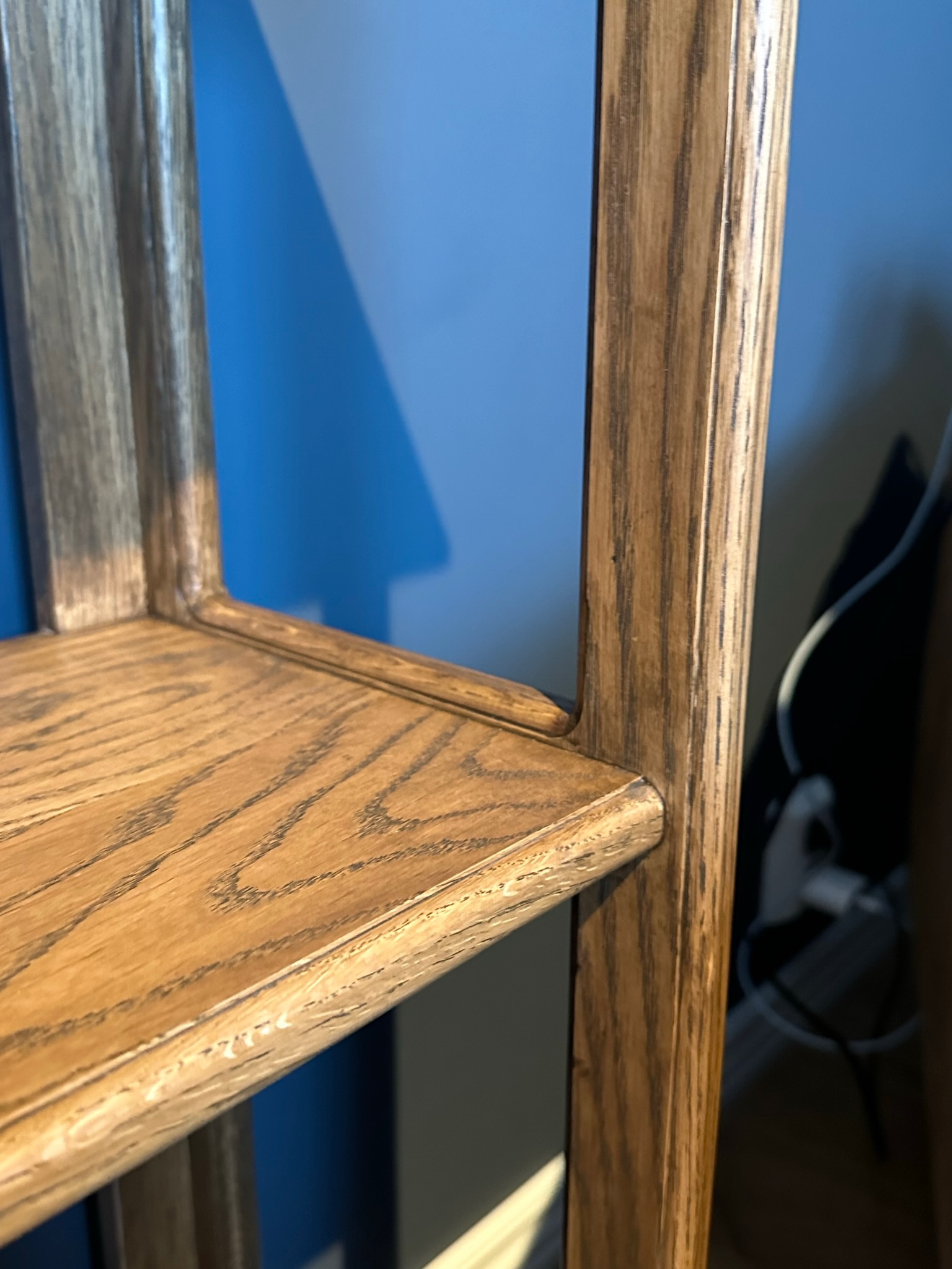 Hyllen er lagd i heltre eik i brede stav for å fremheve treets naturlige mønstre, noe som er forsterket av pigmentert hardvoks. Fargen lager en kontrast i årringene og i kombinasjon med freste kantet bidrar dette til det klassiske inntrykket.