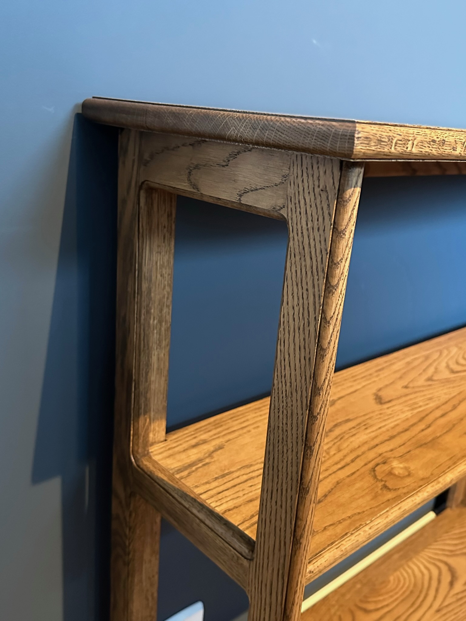 De nette sidene balanserer hyllen til å bli nettere og mer moderne enn klassiske tunge møbler, samtidig som følelsen av tidløs kvalitet beholdes.